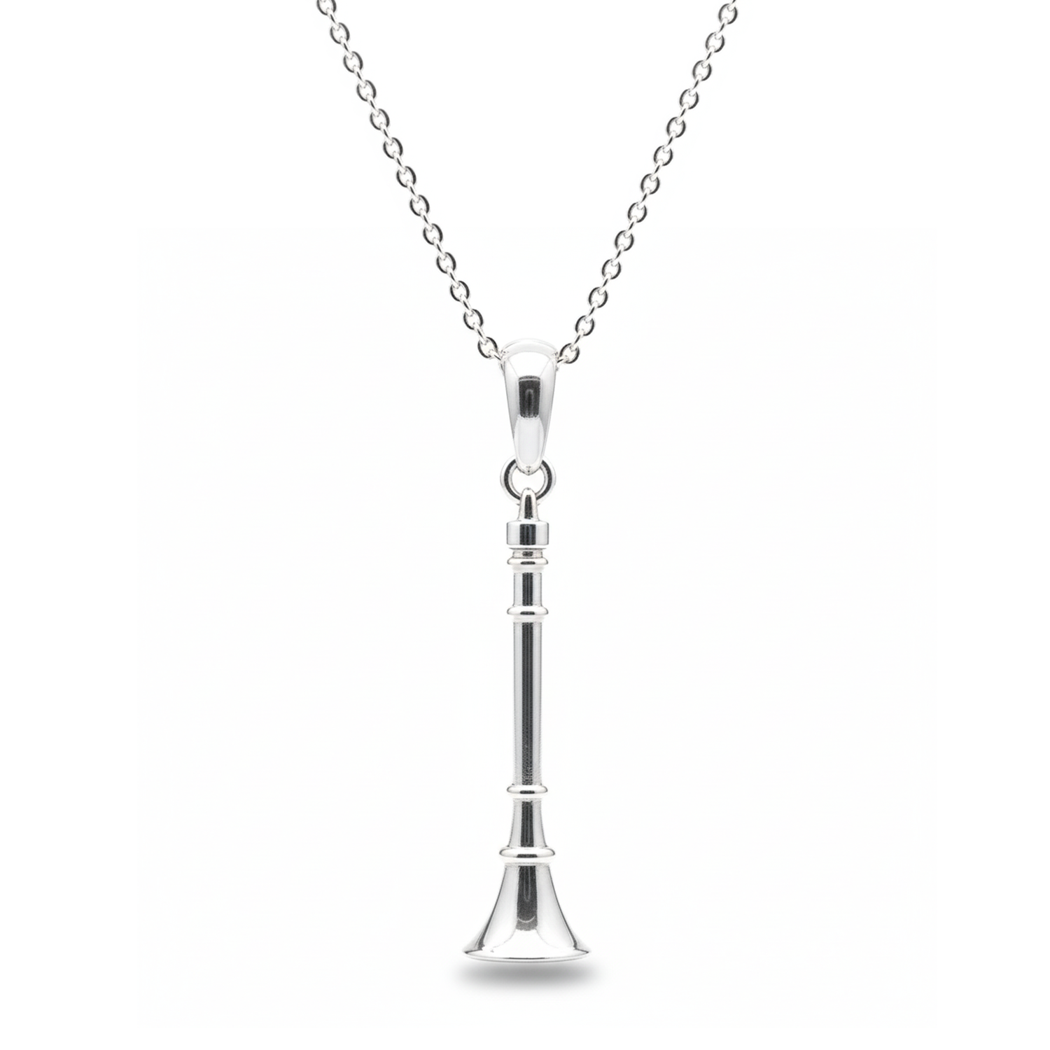 For those who master the subtle tones and deep resonance of woodwind instruments, this Clarinet/Oboe Pendant is a tangible symbol of your musical skill and dedication to orchestral performance. This elegant silver-tone pendant features a realistic and detailed representation of a Clarinet, Oboe, or similar woodwind instrument's body. The design perfectly captures the instrument's slim profile, finger holes (with dark accents to emphasize them), and the flared bell at the bottom, making it an ideal woodwind-themed accessory for clarinetists, oboists, band members, and music educators.