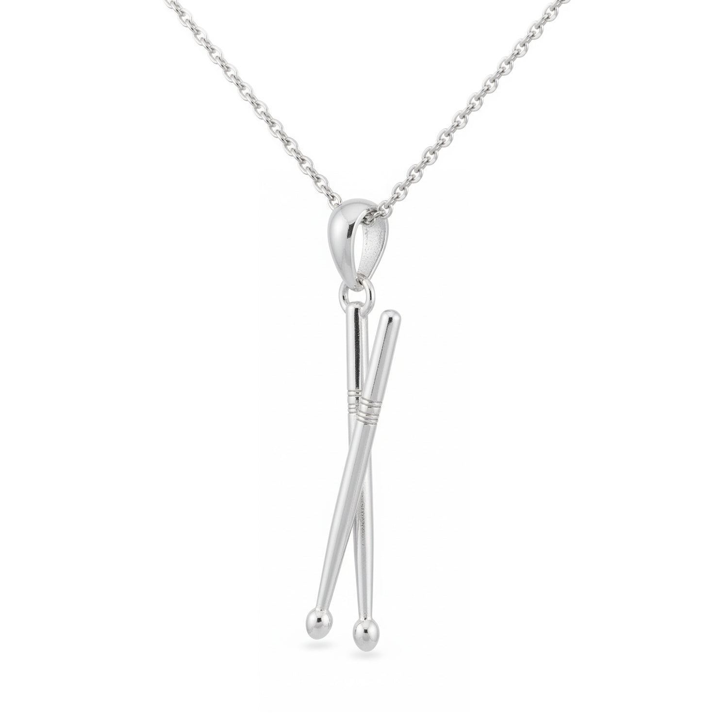 Celebrate your love for instruments and rhythm with this classic and unique Crossed Drumsticks Pendant.
