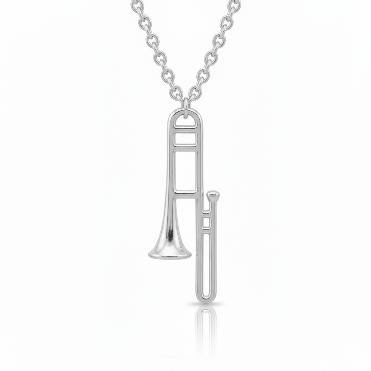 Celebrate your love for instruments and music with this intricately detailed Trombone Pendant.