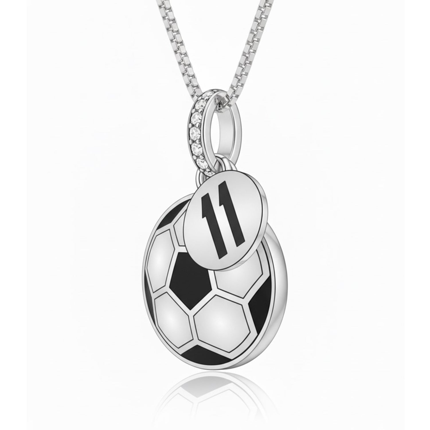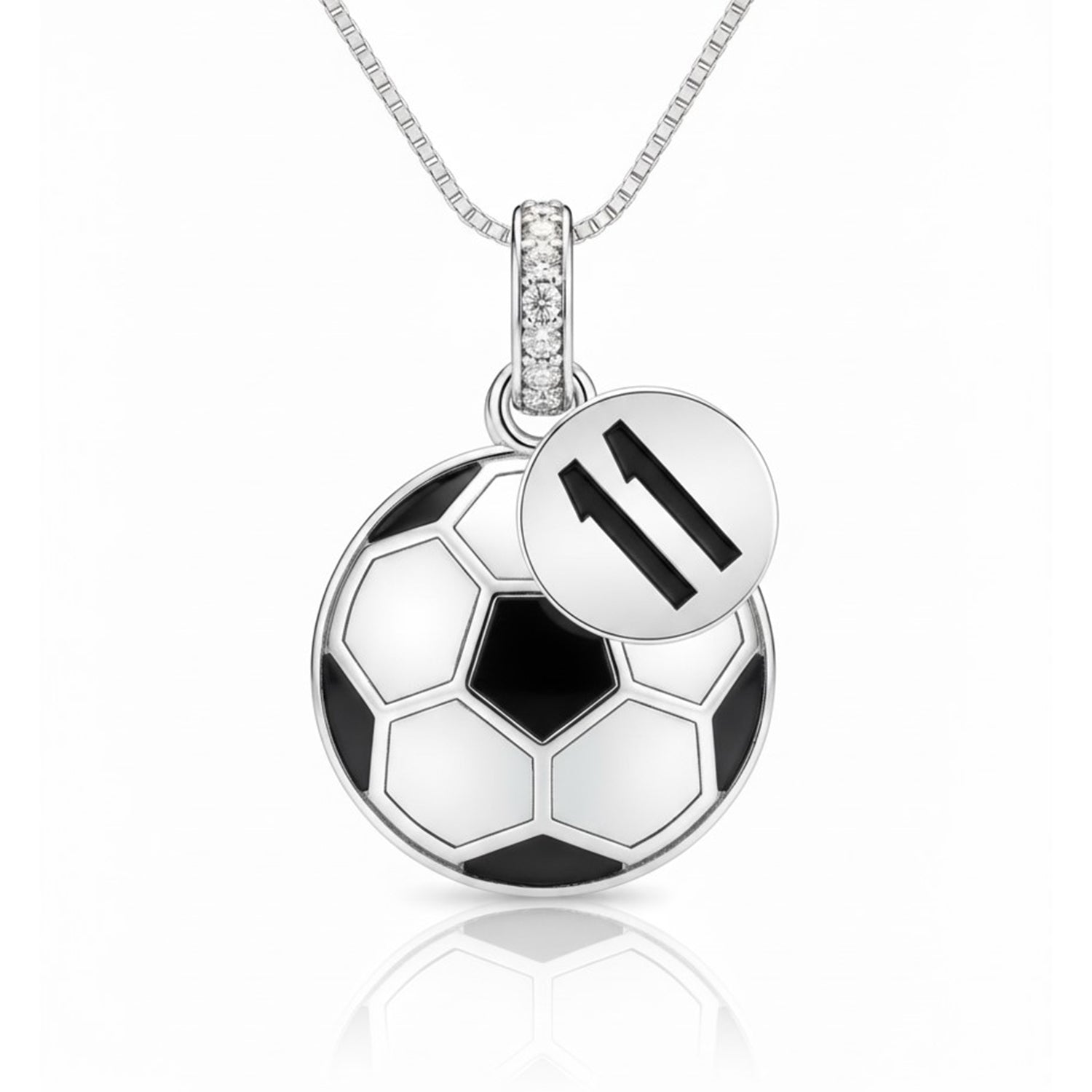 A sleek round charm engraved with the number 11 ads a personalized touch — perfect for players, fans, or anyone who holds this number close. The bail is accented with sparkling zircon stones, adding extra brilliance and enhancing the elegance of the design.