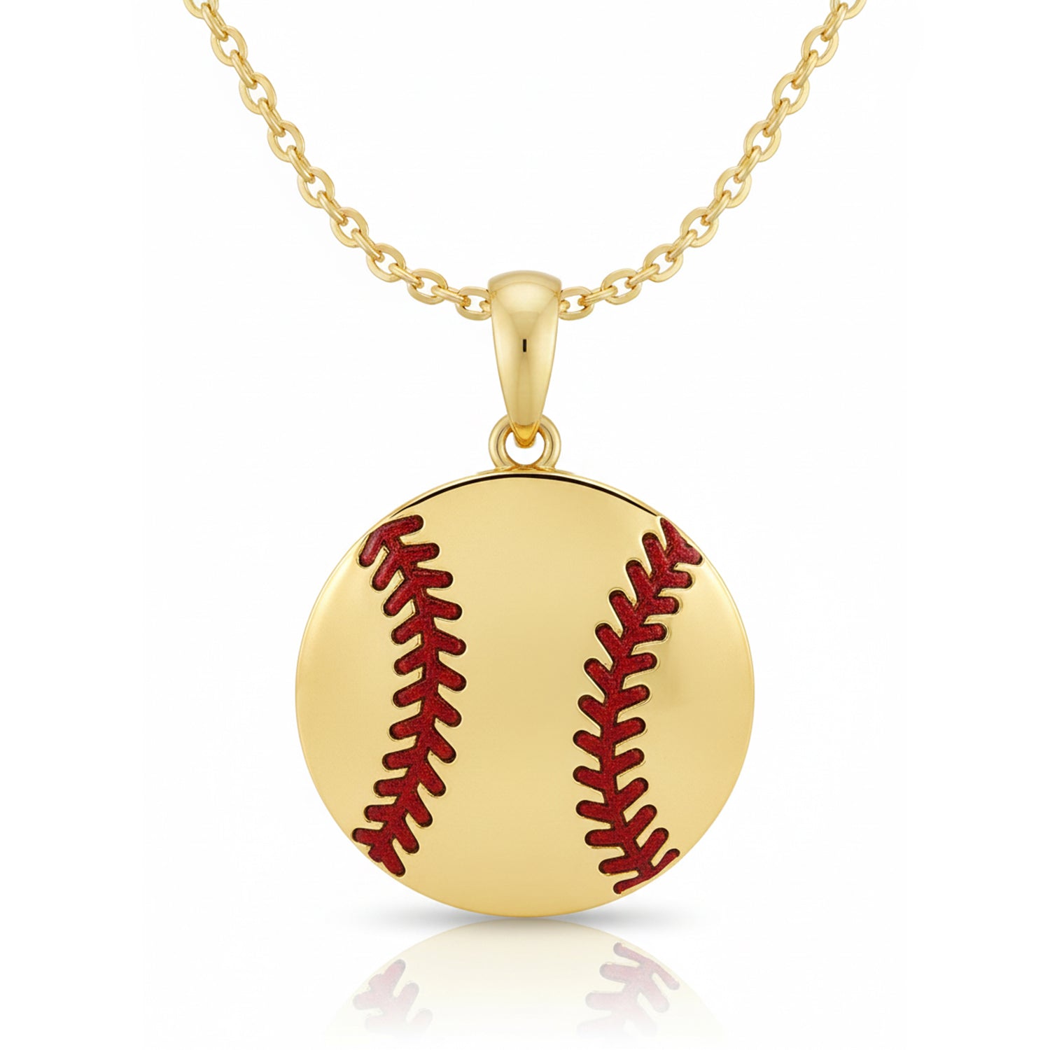 Celebrate your love for the game with this beautifully crafted softball ball pendant, designed with realistic red stitch enamel detailing Finished in a luxurious gold-plated polish, this pendant blends sporty charm with elegant style perfect for athletes, fans, and supporters who want to wear their passion proudly.