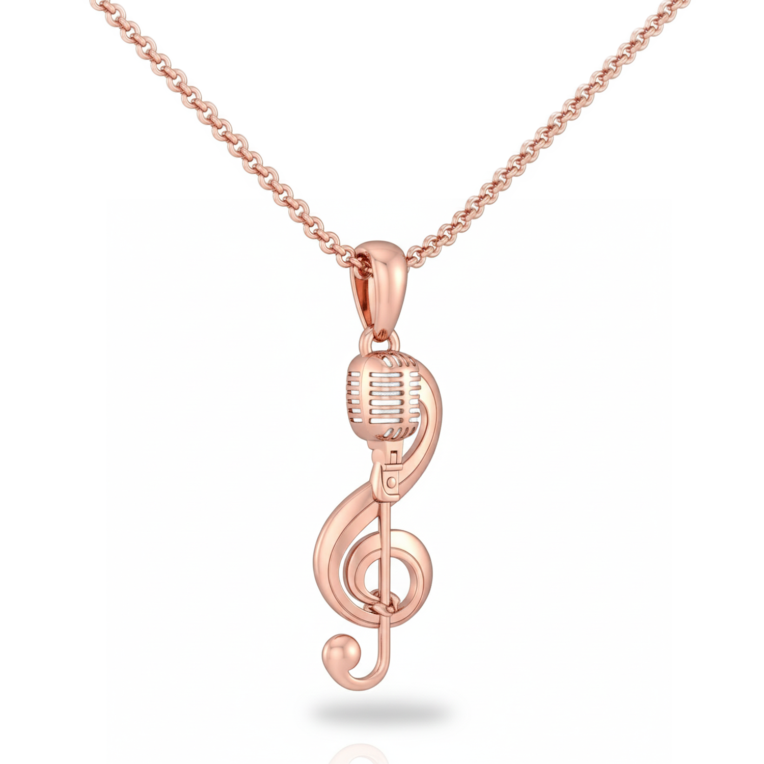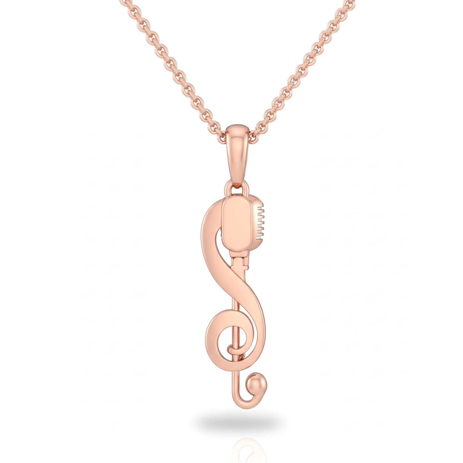 This captivating pendant celebrates the harmonious blend of vocal performance and musical notation. It artfully combines a vintage-style microphone with the classic form of a treble clef, making it a perfect piece for singers, songwriters, and music lovers.